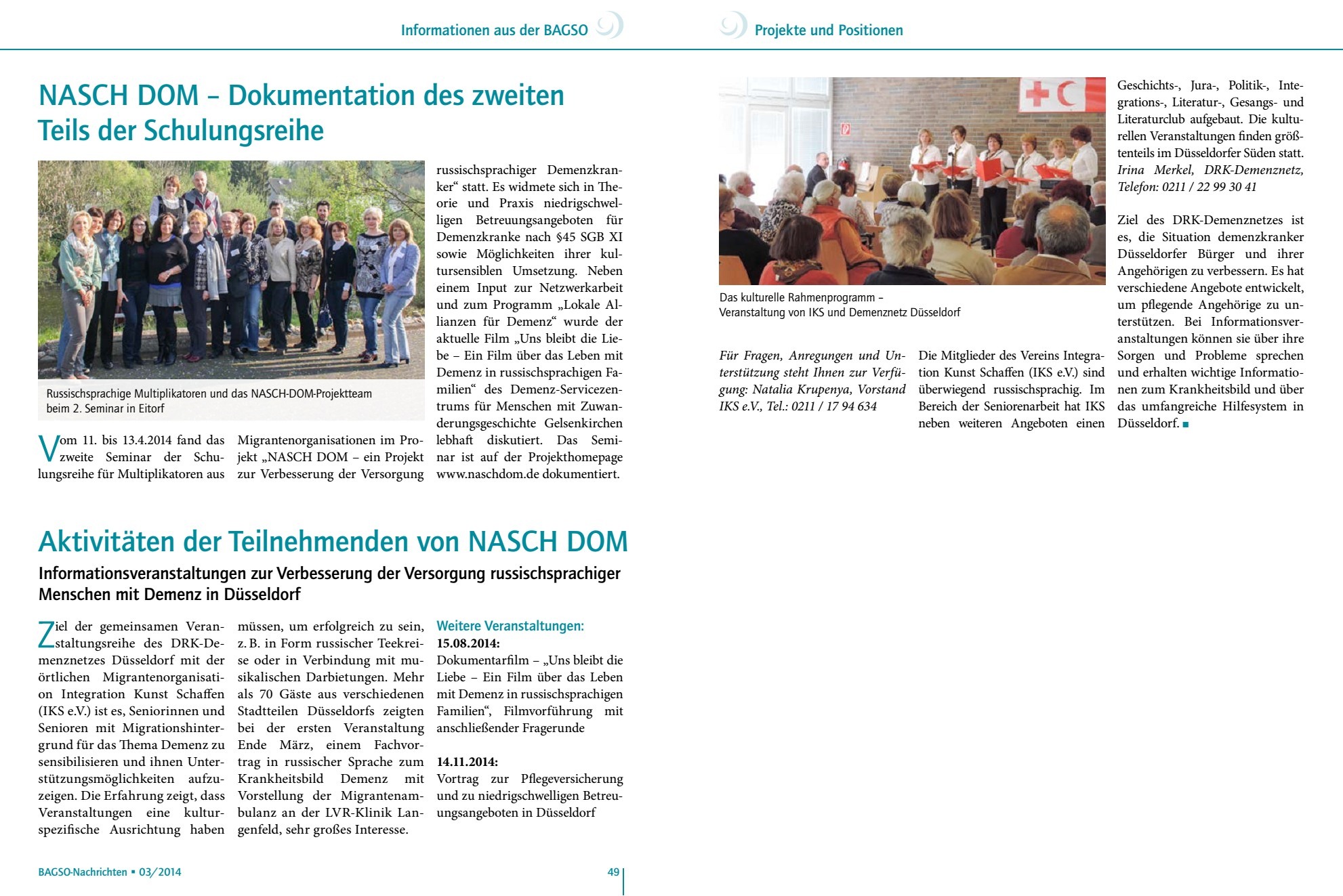 "Aktivitäten der Teilnehmenden von NASCH DOM" BAGSO-Nachrichten 03.2014 |