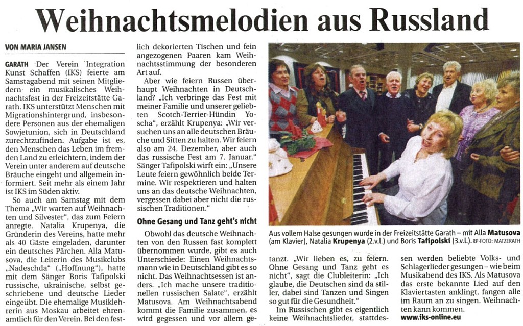 "Weihnachtsmelodien aus Russland" Rheinische Post, Benrather Tageblatt, 15. Dezember 2008 |