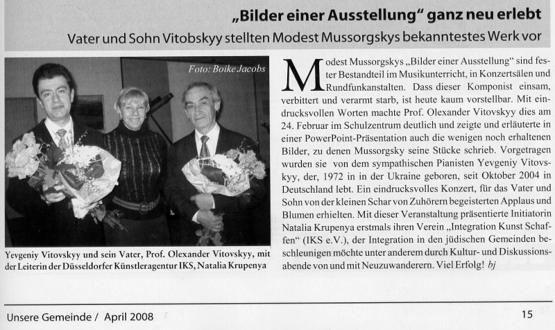 "Bilder einer Ausstellung" Unsere Gemeinde, April 2008 |